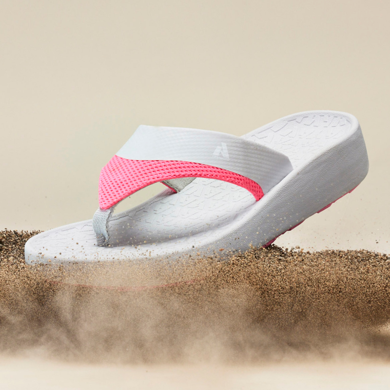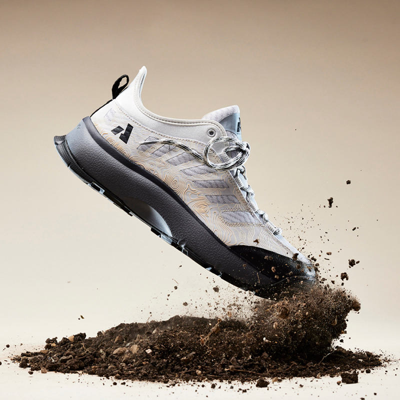 We explored many ways to communicate the footwear but what resonated the most was emphasizing movement with materials that nodded to the product’s use. The hiker is an active shoe meant for trails, so it is the fastest piece, kicking dirt in a deconstructed scene of a nature walk. The flip-flop separates you from hot sand and is literally levitating above an exploding, dusty beach. In this series, the footwear comes to life, serving as an analog to human emotion.