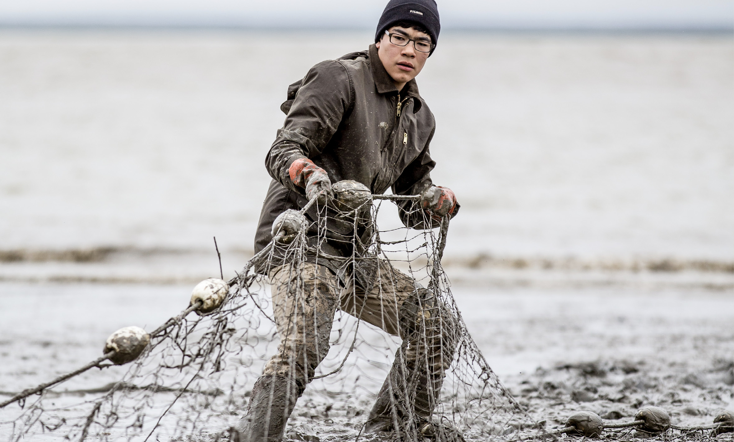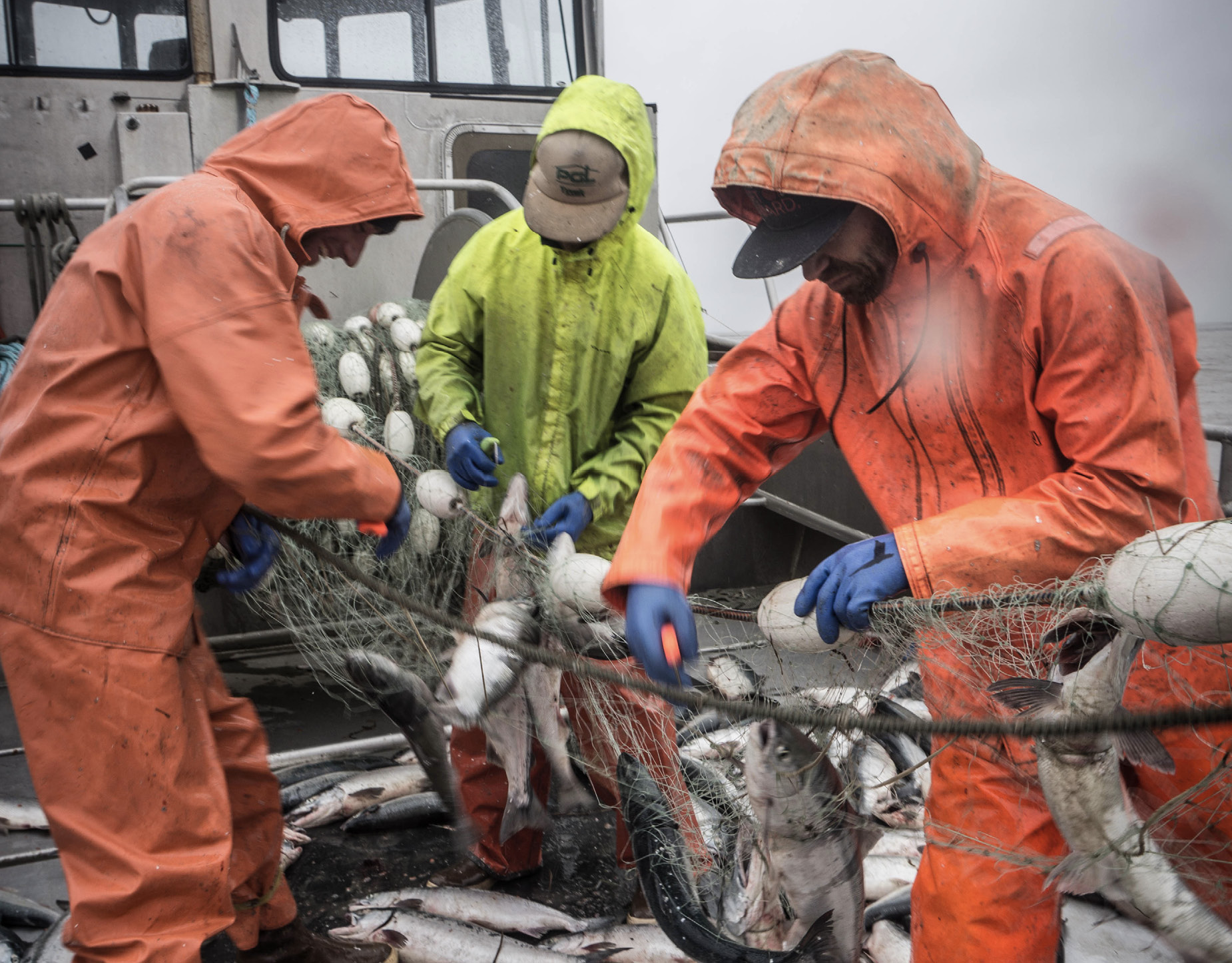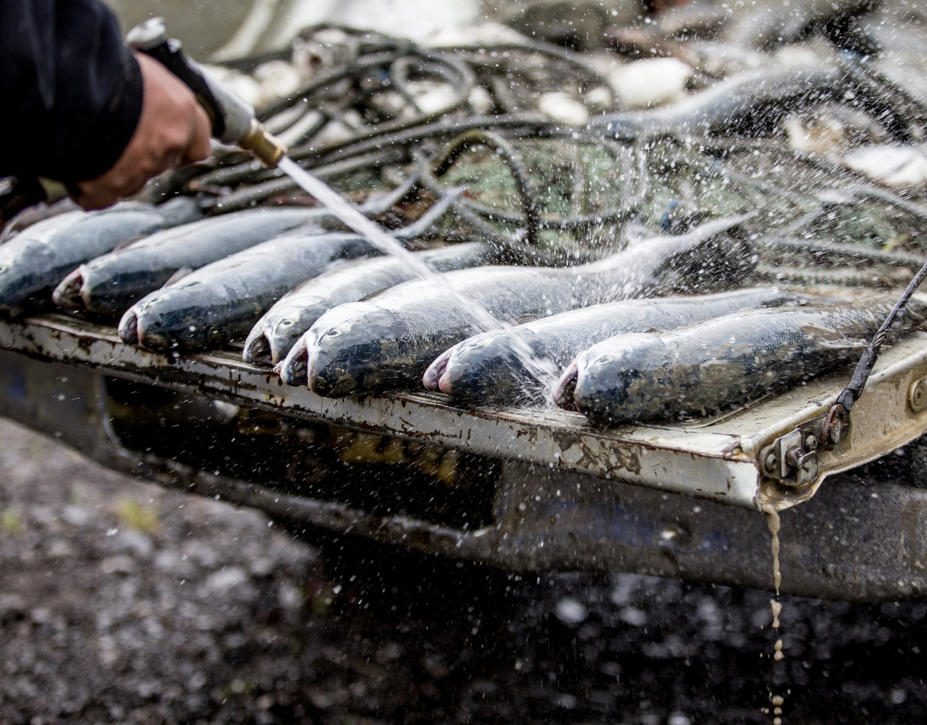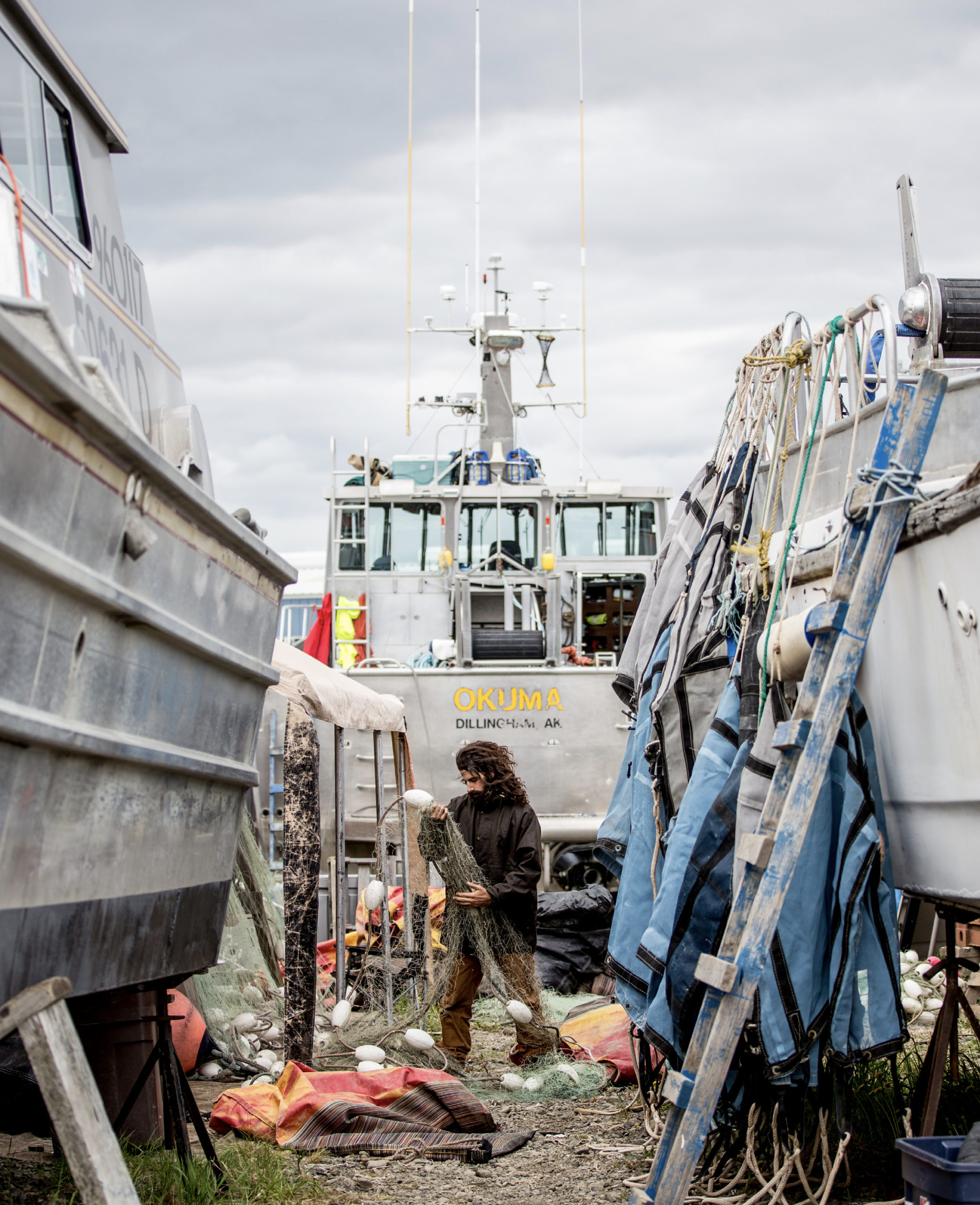 Once the call is made and the fishery opens, thousands of seafarers embark on a seemingly non-stop frenzy of dropping nets and picking fish, sometimes literally right on top of each other. The boats only come back to shore for emergencies, often swapping supplies and salmon with support boats out in the bay. Here, community becomes competition, but still, the same sense of purpose is shared by all.