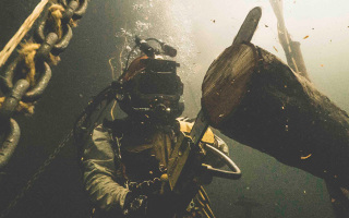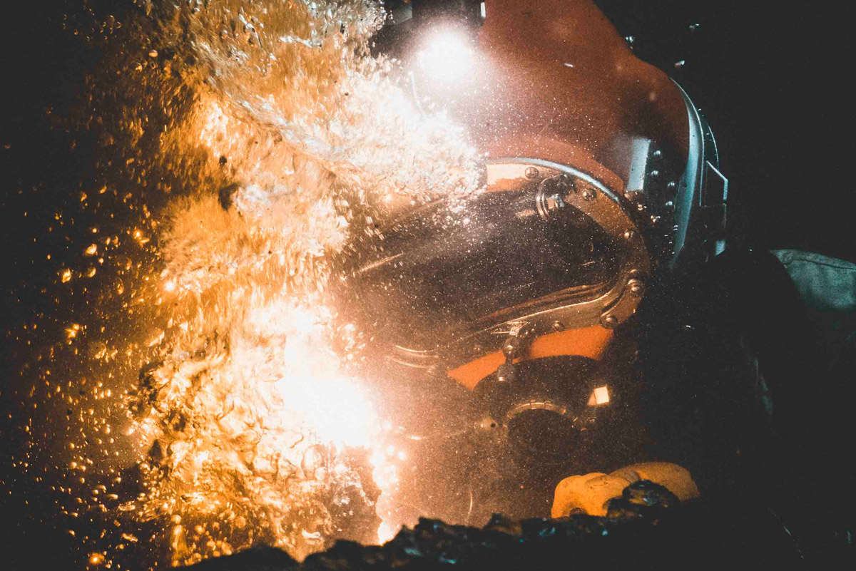 Underwater “burning” is demonstrated. The fuel rod used reaches temperatures around 10,000 degrees Fahrenheit, allowing it to easily cut through any material a diver may encounter.