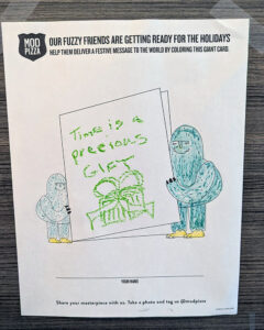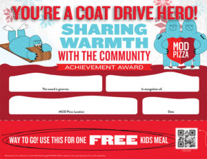 MOD Pizza has a history of celebrating the families that come into the restaurant. Acts of creativity, kindness, and all-around coolness are rewarded with free kids’ meals in the form of a certificate of achievement. For the holidays, we encouraged families to donate to One Warm Coat for a certificate and developed a Yeti-themed coloring sheet to send a greeting to the world.