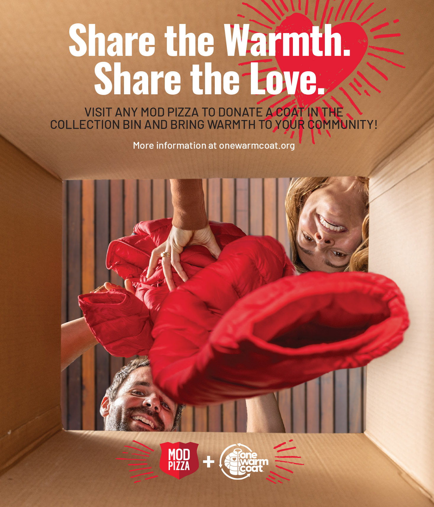 We partnered with One Warm Coat to host jacket donations in all of our restaurants during the holiday campaign. We used brand-red coats to bridge photography-forward assets with our established Yeti theme.