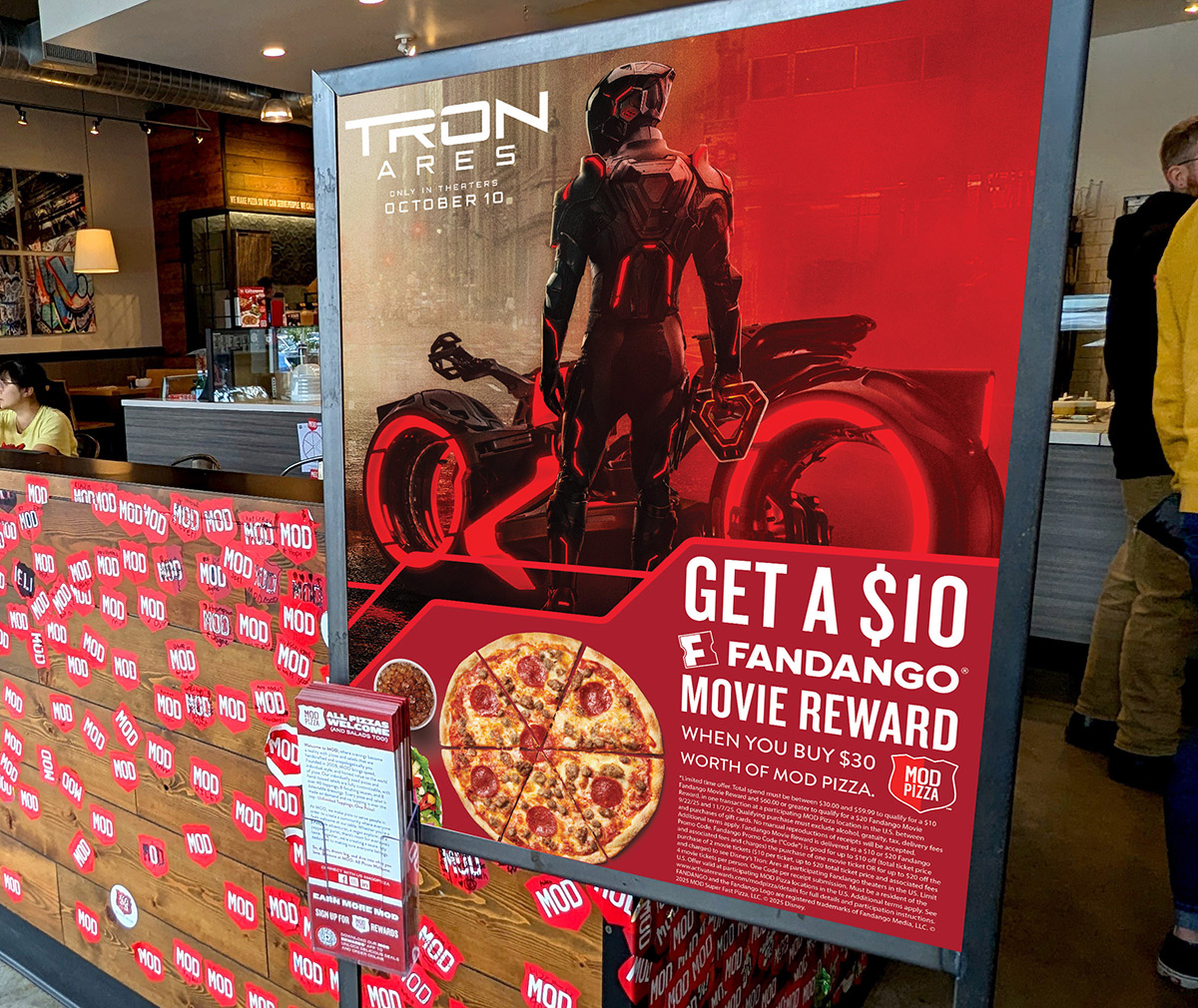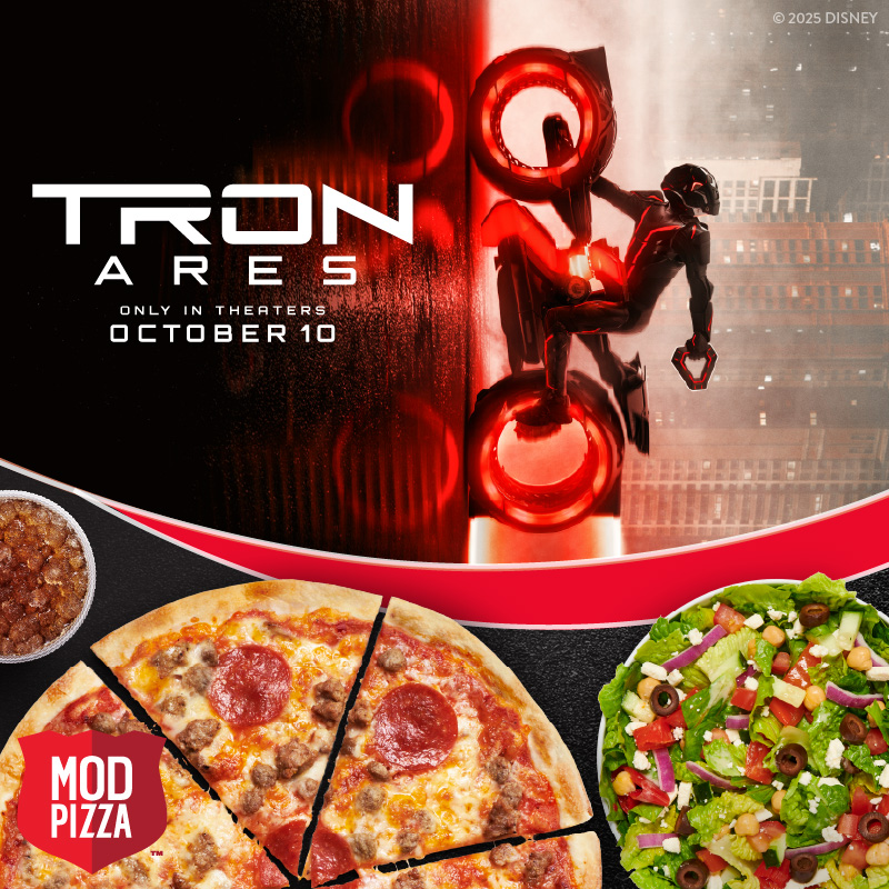 In the brand’s largest IP collaboration to date, MOD Pizza teamed up with Disney and Fandango to deliver a dinner and a movie campaign centered on the release of TRON: Ares. As the exclusive fast-casual dining brand partner, we brought the world of TRON to all of our activations, including CTV ads, 3rd party paid media, film and entertainment influencers, live events, email, and owned channels. Customers who made a qualifying purchase at MOD Pizza received a $10 Movie Reward from Fandango to see the film in theaters. The promotion attracted a spike in new customers while delighting existing and loyal guests.
